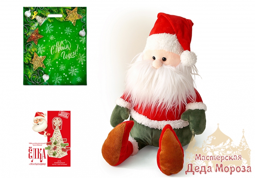 В новогодний подарок входит: Набор "Ёлка с предсказаниями", кондитерский набор в конфетнице-"Дедушка", пакет с новогодней тематикой.