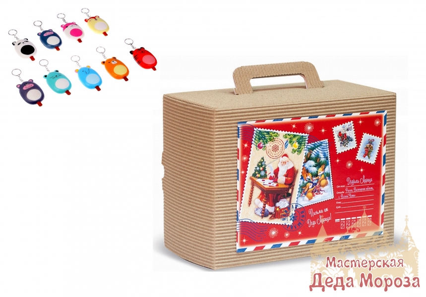 В новогодний подарок входит: Мялка-сквиш «Звери» на брелоке, кондитерский набор, упаковка.
