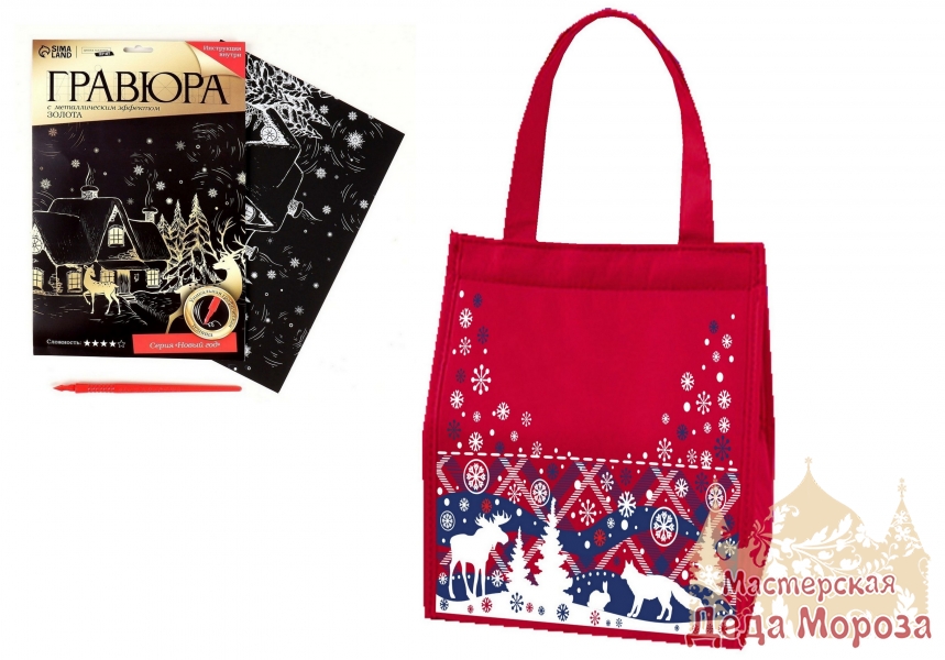 В новогодний подарок входит: Гравюра «Зимний лес», с эффектом золото, А4, кондитерский набор, упапковка.